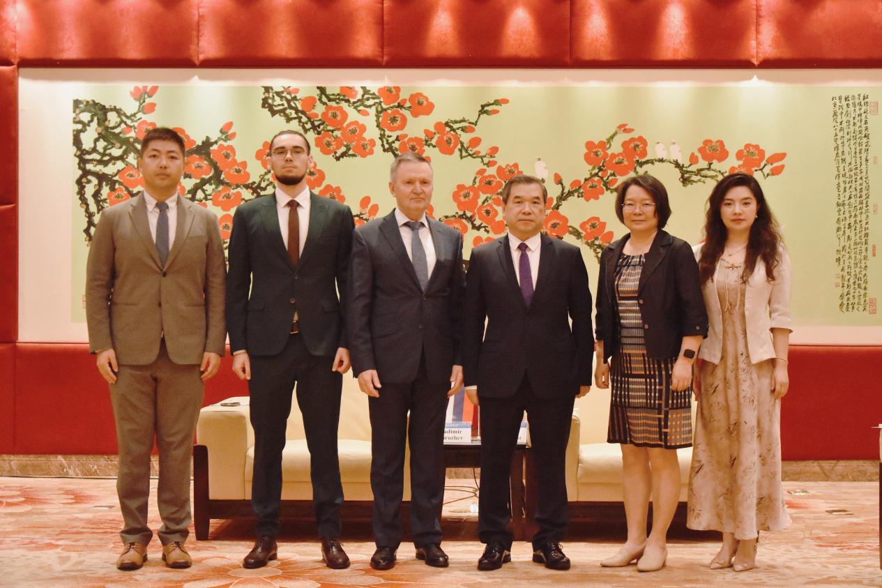 On November 5, Vice-Rector Vladimir Storozhev and his delegation from Moscow State Linguistic University (MSLU) visited Guangdong University of Foreign Studies (GDUFS). Vice President Jiao Fangtai welcomed the guests at the VIP Hall of the Administration Building on the Baiyun Mountain Campus. The two sides exchanged ideas on talent cultivation, academic cooperation, and other areas.