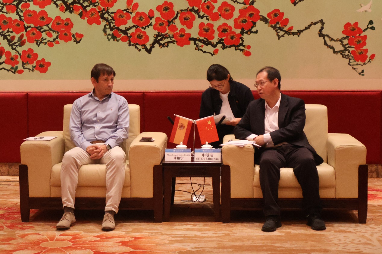 Shen Minghao gave a detailed account of the university’s history, educational philosophy, and internationalization profile. He noted that GDUFS has been committed to expanding its global education cooperation network and has established partnerships with 511 universities and academic institutions in 66 countries and regions. Among them, cooperation with Spanish universities has been particularly close, especially the seven-year partnership with Complutense University of Madrid, which has produced significant outcomes in student exchange and other areas. He expressed the hope that this visit would provide an opportunity to explore deeper cooperation in areas such as faculty and student exchange, joint research, and academic resource sharing, with particular focus on developing innovative models for interdisciplinary programs in the Spanish language and related fields. He added that such cooperation would not only promote the development of the two universities but also contribute to people-to-people and cultural exchanges, and foster mutual learning between the two countries, injecting new vitality into bilateral relations.
