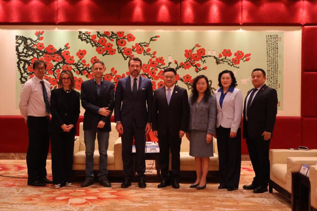 On the afternoon of October 23, Valerio De Parolis, Consul General of Italy in Guangzhou, and his delegation visited Guangdong University of Foreign Studies (GDUFS). Shi Youqi, Secretary of the Party Committee of GDUFS, met with the guests in the VIP Hall of the Administration Building of the Baiyun Mountain Campus. The two sides held cordial discussions on China–Italy higher education cooperation, language education exchange, as well as on the development of the Italian language program.