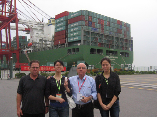 Ding Hui and Sun Yue with Cuban and Brazilian delegates at Nansha Port