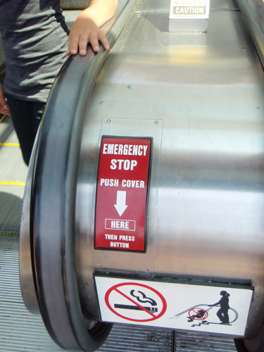 Emergency button on an escalator