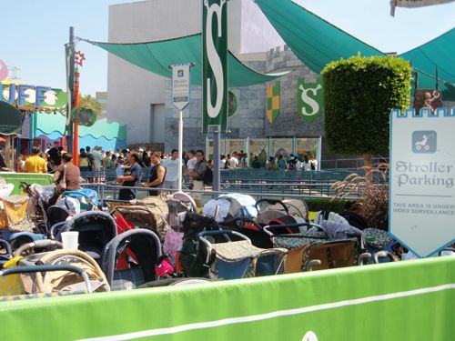 Parking area of baby strollers in a theme park