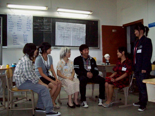 During the first class of the term, he gives students a name tag on which they write their Chinese and English names, so that he can address them directly. "It is a good way for me to learn their names quickly."