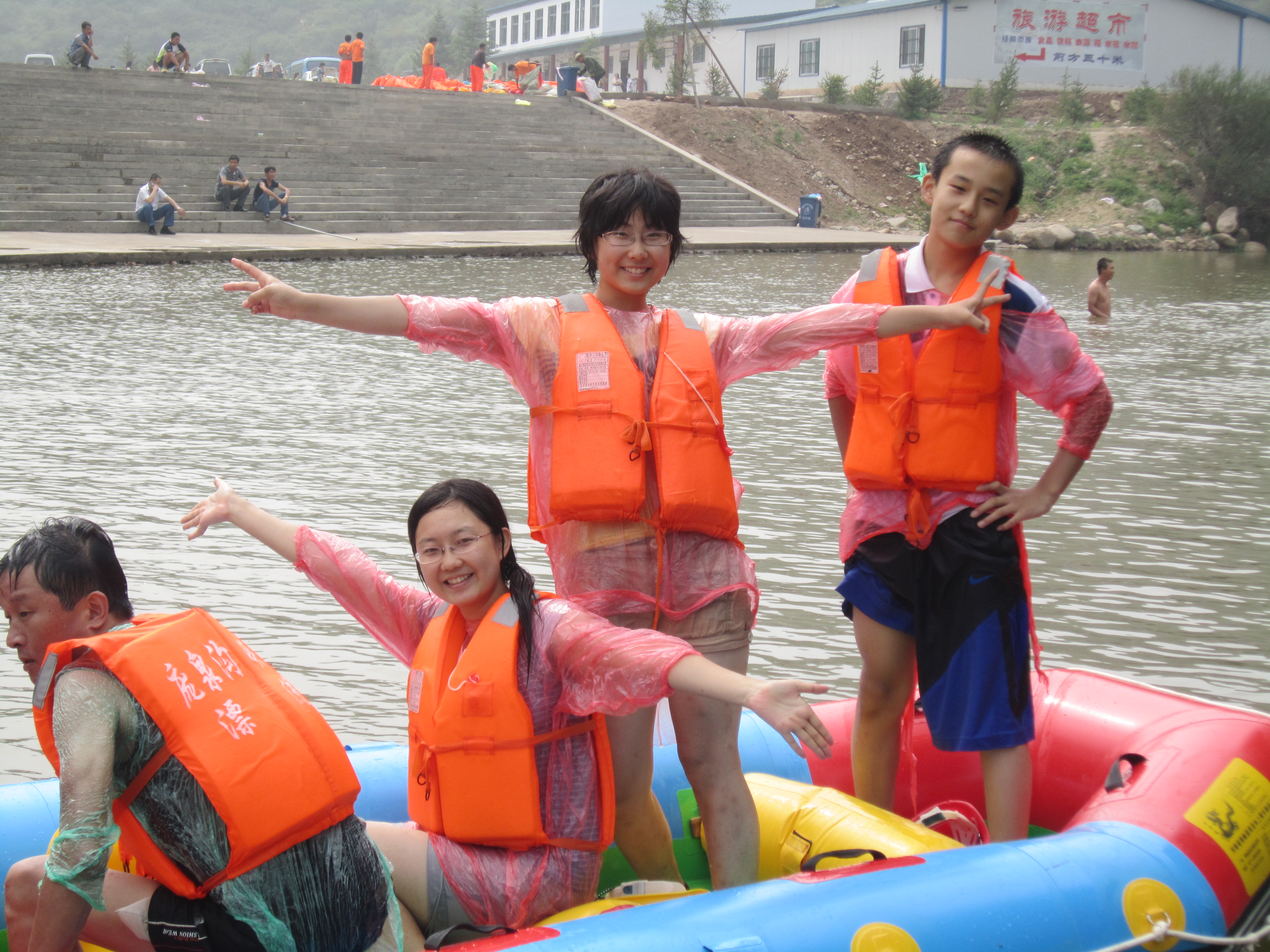 When several rafts got together, a water fight was inevitable. Some people used their safety helmets to splash water on one another while others made use of their water pistols. I was always the one being splashed, with two hands crossed to protect my body and no ability to fight back. Michael actively plunged into the river when our raft rested on the bank. He acted like an invincible general, soaking all the others to the bone.