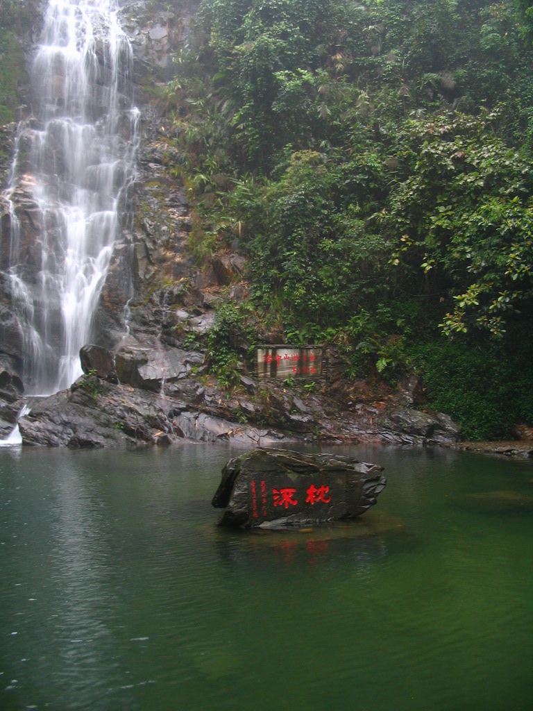 Besides Seven-star Crags, Dinghu Mountain always attracts visitors from home and abroad. As one of the four famous mountains in Guangdong Province, Dinghu Mountain is praised as " Emerald on the Tropical of Cancer". There you can embrace nature and feel calm in heart. Around the year, trees are luxuriantly green and it serves as a natural oxygen bar. When summer comes, more people would like to have a trip to Dinghu Mountain, for it's a good summer resort in Zhaoqing. Among all the scenic spots in Dinghu Mountain, Flying waterfall pool is the most popular one. After the revolution of 1911, Sun Yat-sen and his wife Song Qinglin travelled around Dinghu Mountain and had swum in the flying waterfall pool. You can still find the inscription " Sun Yat-sen's Swimming Place" on the precipice nowadays. Before you reach the destination, before you see the waterfall, you need to climb up the mountain step by step. However, it won't be boring, for the birds' twittering and the sounds of waterfall will accompany you along the way.