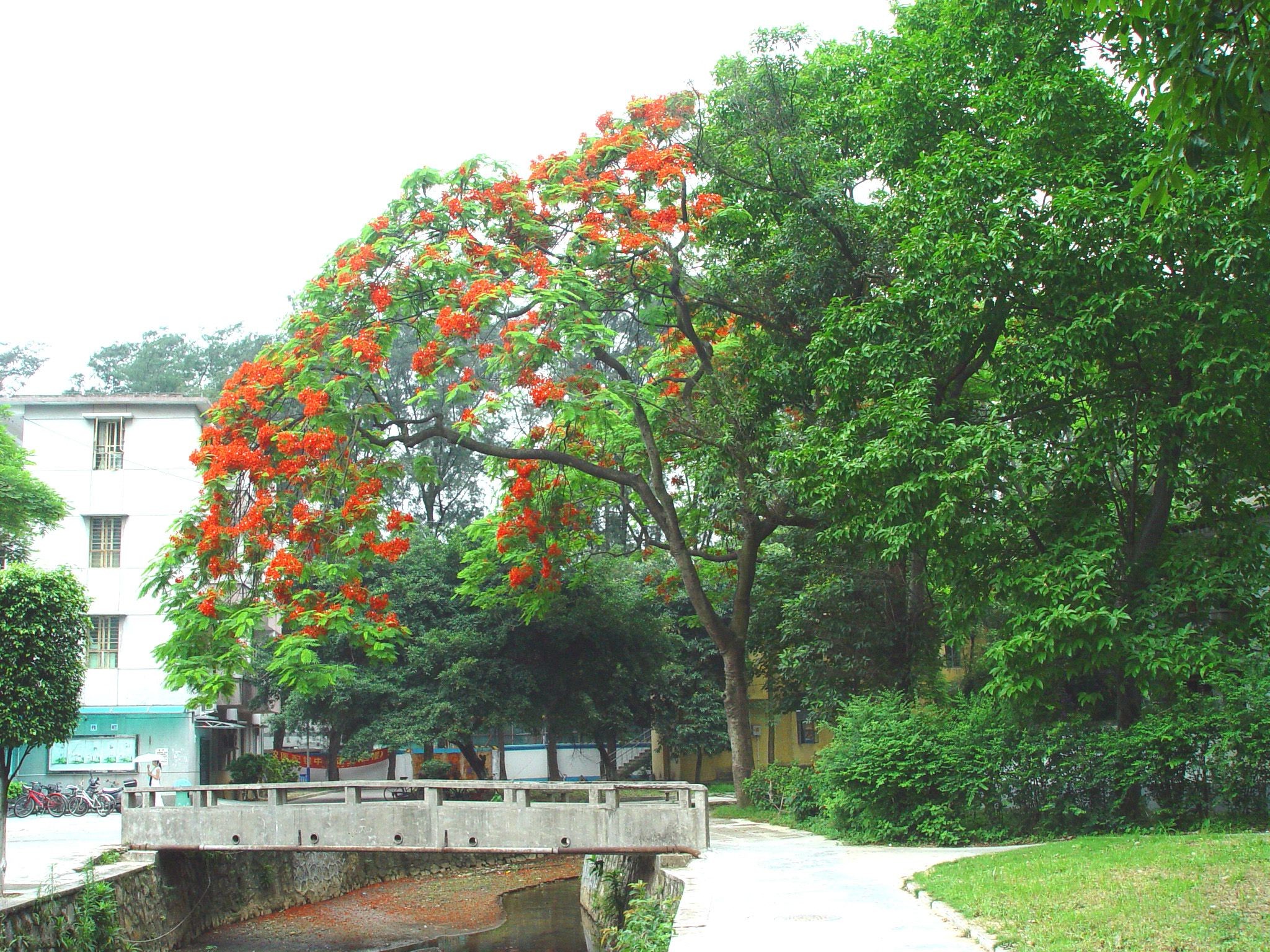A clear river, called Lovesick River, flows slowly across the GDUFS campus from north to south. Lush trees grow high, reaching up to Heaven on both sides, appear to protect the river's peace like those loyal soldiers of the old palaces. So, walking along the riverside, we step back from the daily hustle of campus life to feel the inner peace in the shadows of the trees, especially in hot and stuffy summer months.