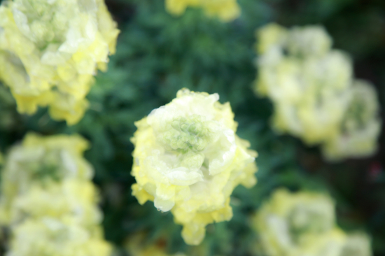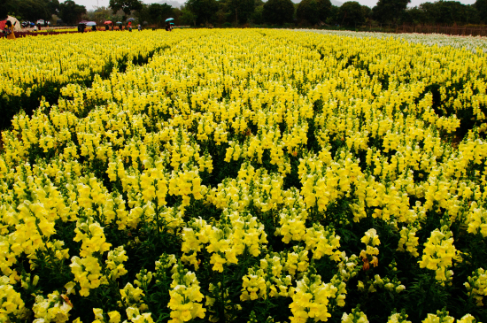 Stepping into a field of flowers, the view of a cheerless rainy day suddenly clears up.