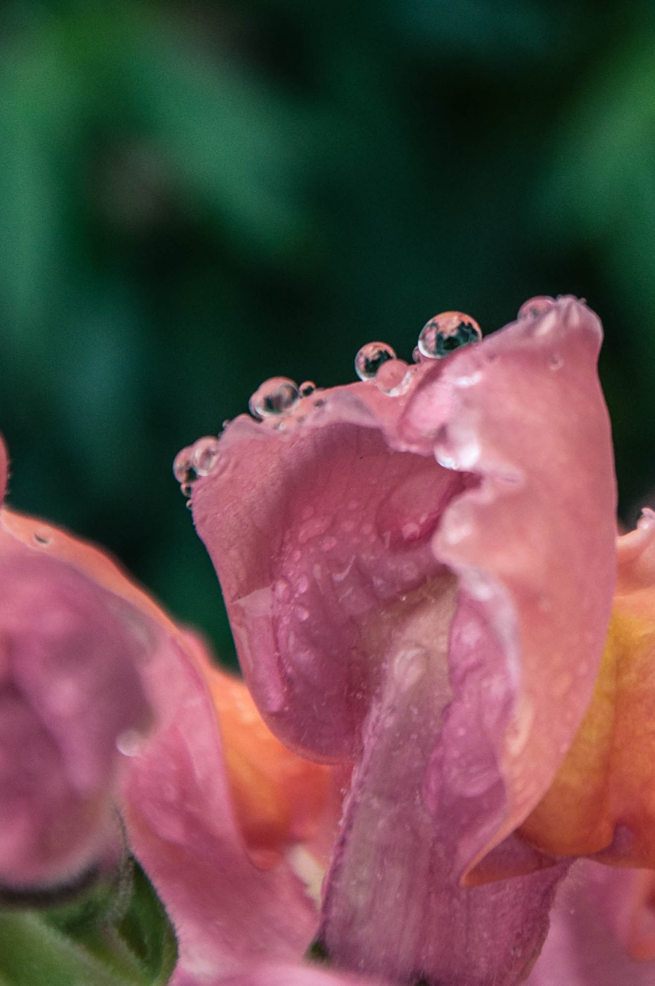 A single petal appears tender and beautiful with drops on it.