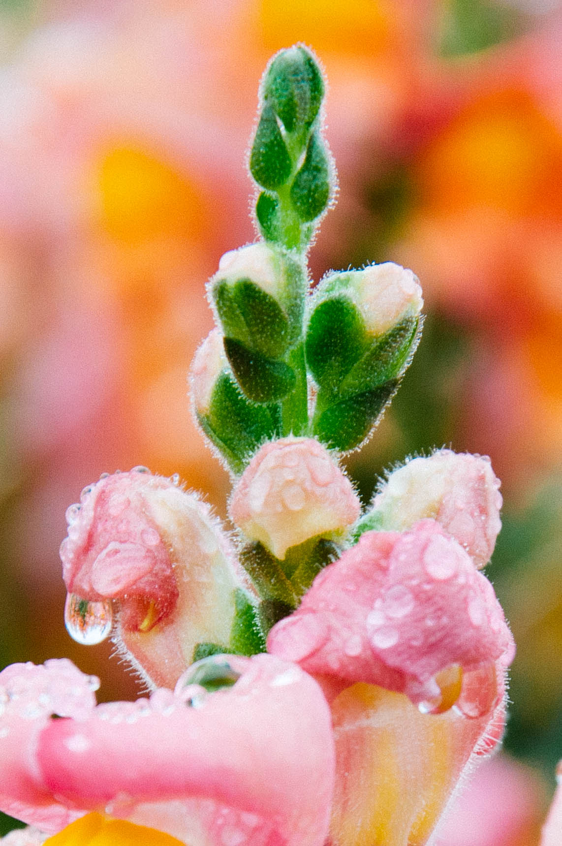 Set off by the raindrops, the buds in bloom looks more attractive.
