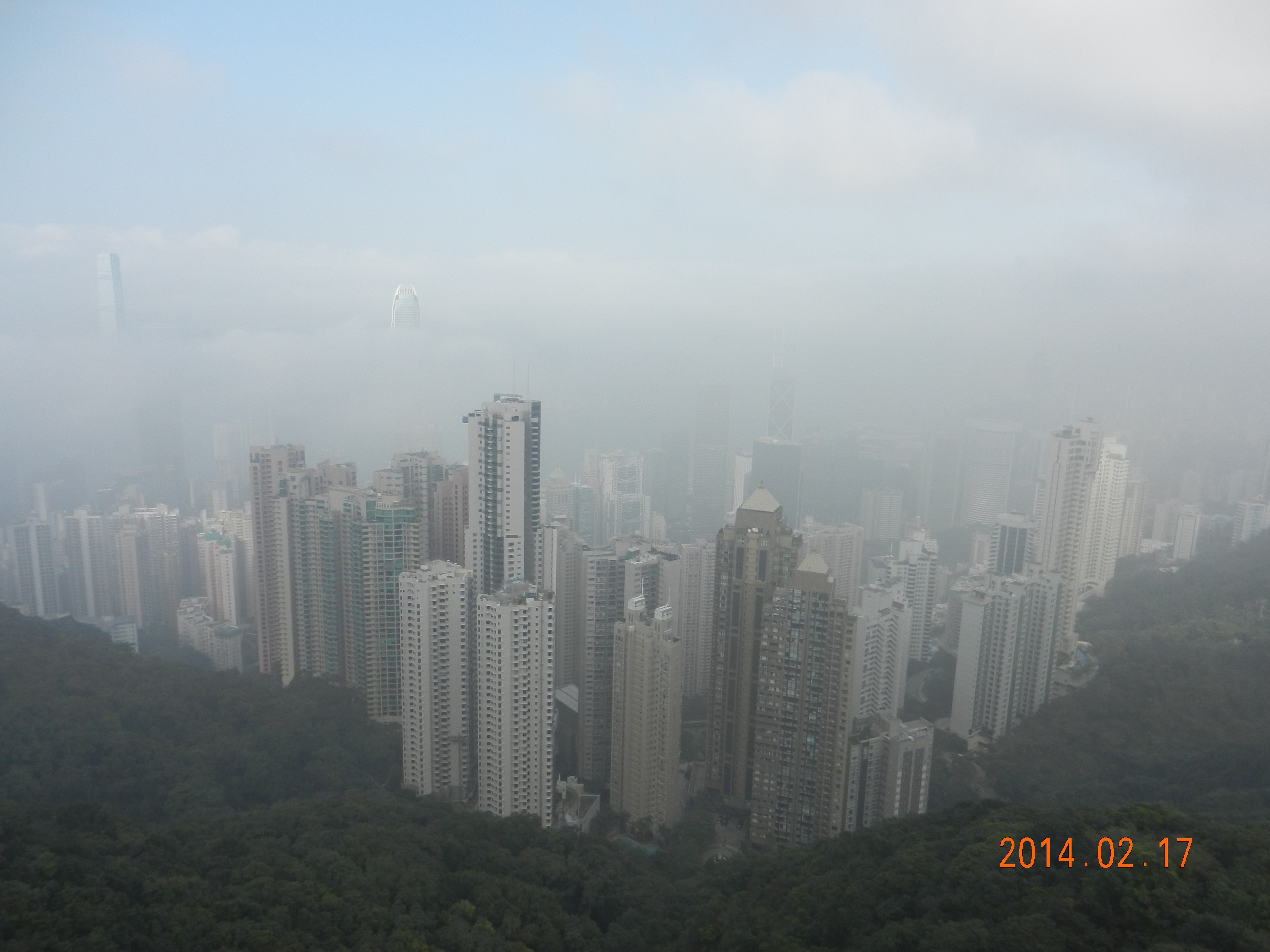 It is an unforgettable trip for me.I got there in the day and there are still many people.(a lot more in the early evening)So I waited in the line,listening visitors from all around the world talking and chatting with my sister.Then came the Peak Tram.It is pulled by steel cable and climbs the steep hill.It is so steep that the building we passed looked like they were leaning at a 45 degree angle!We reached our destination.Markets and cafe are everywhere,but we walked straight to the peak by elevator. Striking scenery came to sight!We could see the whole city on View Terrace,the wind breezing and the sun shining,how beautiful it is!