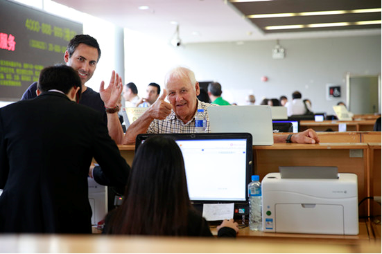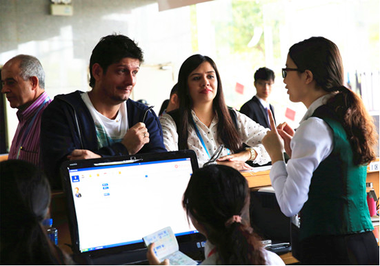 Student translators offer instructions to foreigners about how to use online trade platform