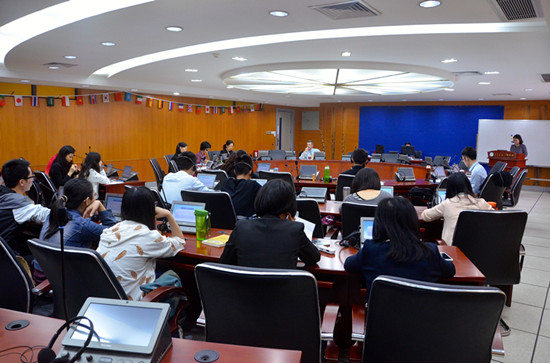 As a semi-hermetic dark room with limited space, the mock meeting room is dubbed by the students as the “threatening dark room”. But junior student HU Weitang with a major in German considers the “dark room” as a good place for in-depth thinking and anti-pressure training. German-language and interpretation teacher CHEN Jianing thinks that, with the professional lesson preparation and advanced devices, students’ capability of a quick reaction, flexible interpretation, bilingual transformation and the ability to work under pressure enhance significantly.