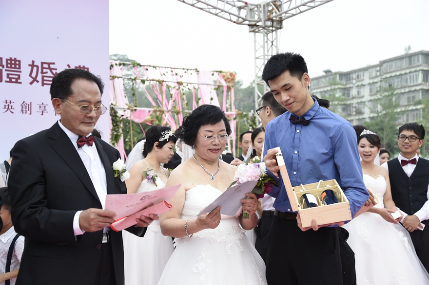 The non-profit group wedding was hosted by the GDUFS Alumnus Association and was organized by the Dandelion Creation and Sharing Community. With great passion for GDUFS 50th anniversary, students had racked their brains to invent creative ways of having a wedding for about half a year. They got everything ready including recruiting volunteers, bridesmaid, groomsmen and other resources. On the wedding, volunteers dressed in red T-shirts could be seen everywhere. Bridesmaids and groomsmen also spared no effort to assist the brides and bridegrooms. Thanks to their dedication, the wedding was well-organized and well-received.
