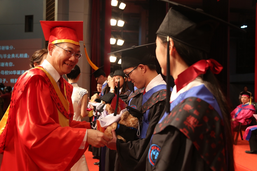 In addition, ZHONG encouraged the graduates to sustain their dreams, “You can only drink in the beauty of life after hard work, but not meaningless waiting. If you are caught in a dilemma by your dreams and the reality, the only thing you can do is to narrow the distance by your own work”, “What shows you’ve grown into a mature adult is the silence of tears”, and “If there are hopes in your mind, the world cannot be dark; if you don’t surrender, nothing can hurt you.”