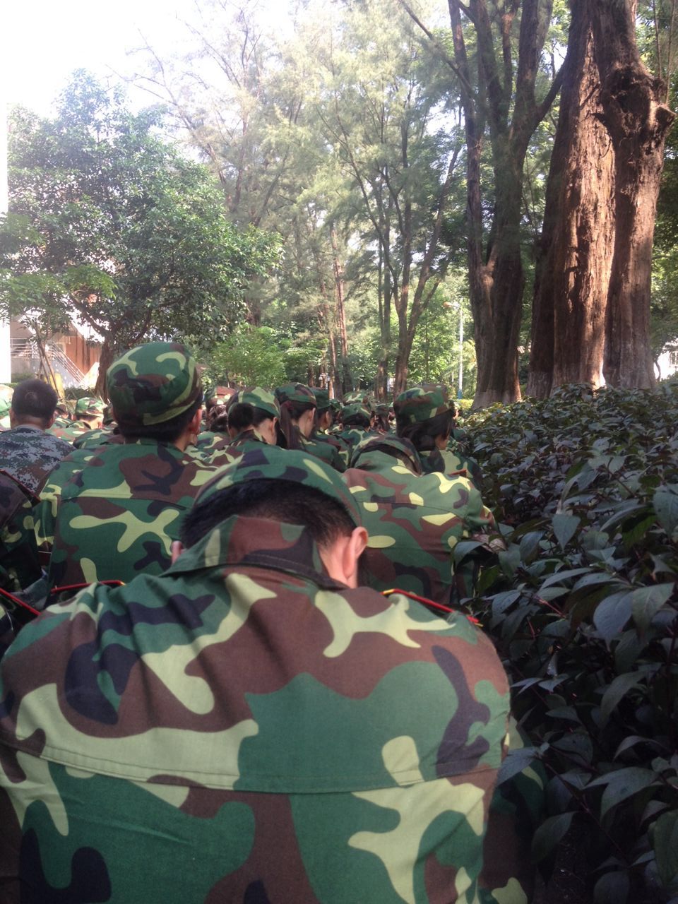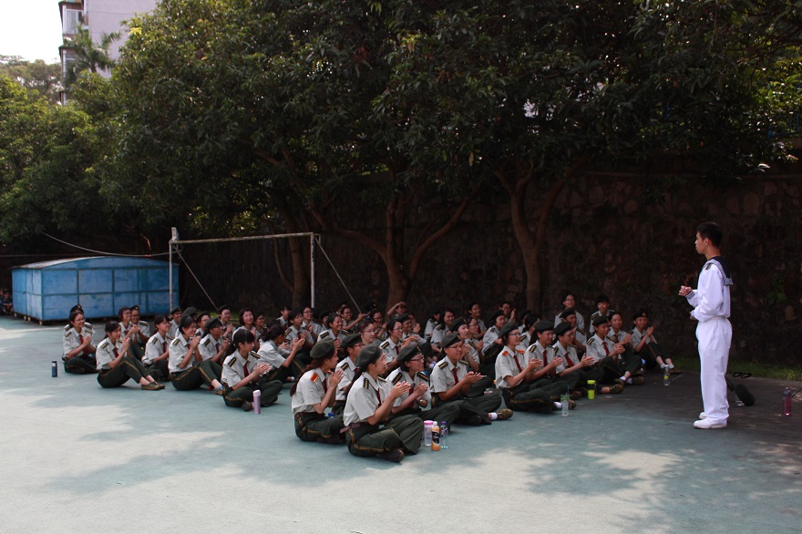 Eventually, a green dragon of students capture all the canteens by the time they’re free for supper. Everywhere we look is green. Among them, some ‘Greenmen’ are too exhausted to have an appetite, while others are eager to kill their hunger because of tiredness; some walk towards their dormitory in haste, while others are still so energetic to chat with their partners in a jovial mood. It is mostly about something interesting, but there are also some complaints about standing in the sun. ‘I’ m very exhausted. I got hungry only an hour or so after breakfast and I suffered with my teeth clenched the rest of the time’