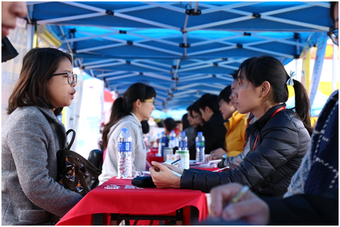 Guangdong Campus Job Fair for Graduates in 2016 (specialty of foreign languages, foreign trade and management concerning foreign affairs) was held in the playground of the north campus, GDUFS on December 6th. This job fair was hosted by the Department of Education of Guangdong Province and organized by GDUFS. According to the statistics, about 4,000 vacancies were provided by a total of 190 employers, including almost 30 education and training institutions.