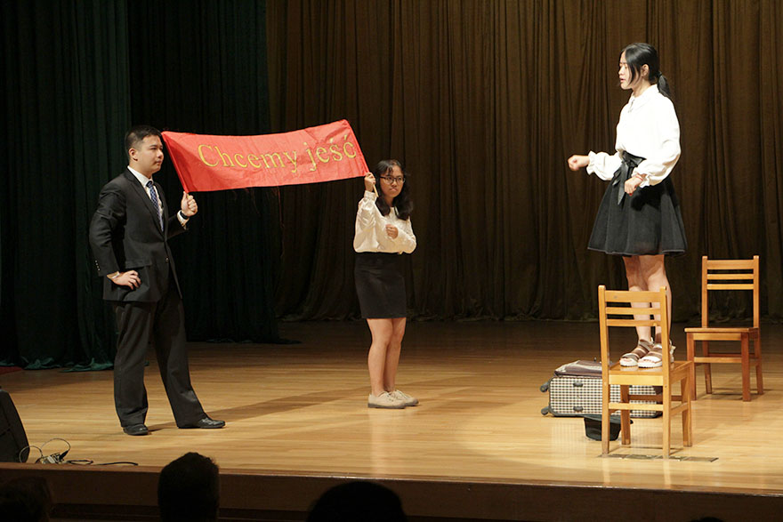 This ceremony is viewed as a conclusion of last year’s drama competition. Preparing for two months, students improved a lot in both performing and Polish, and eventually convinced attendees of GDUFS’ high level of language education.