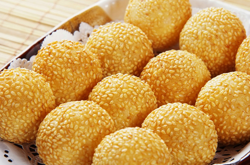 The golden-ball-look Jin duei is popular not only because of its auspiciousness of having an abundance of gold, but also on account of the sesame covered on its surface which symbolizes having a lot of children and grand-children.