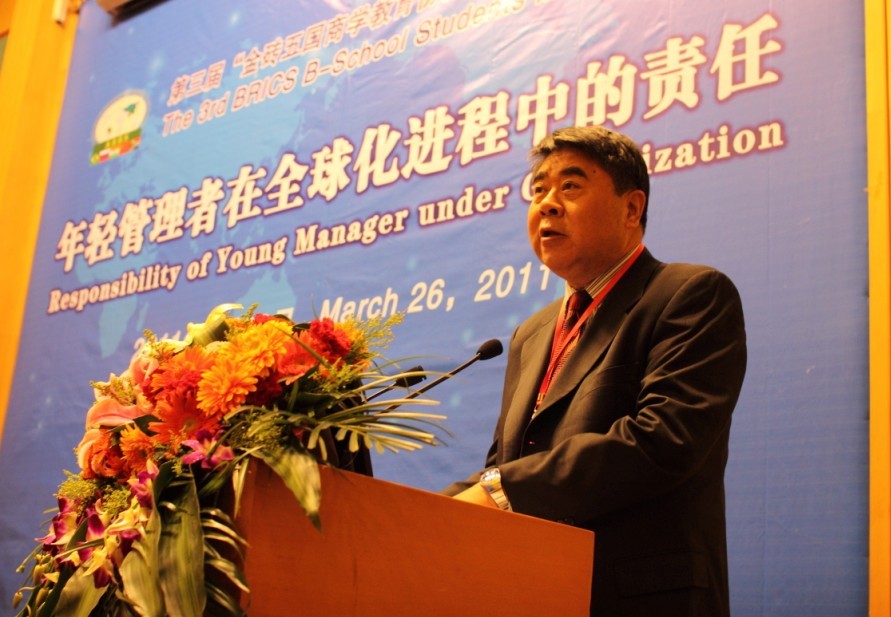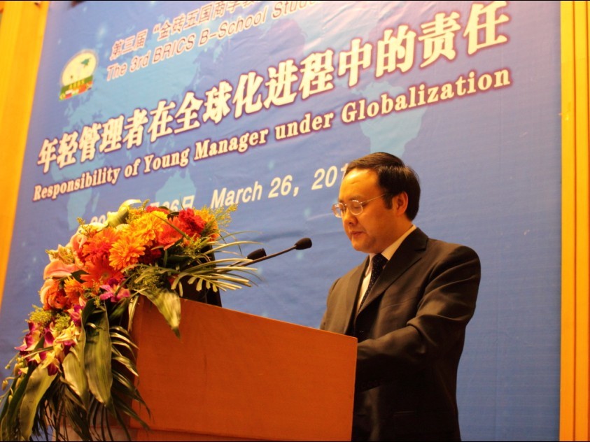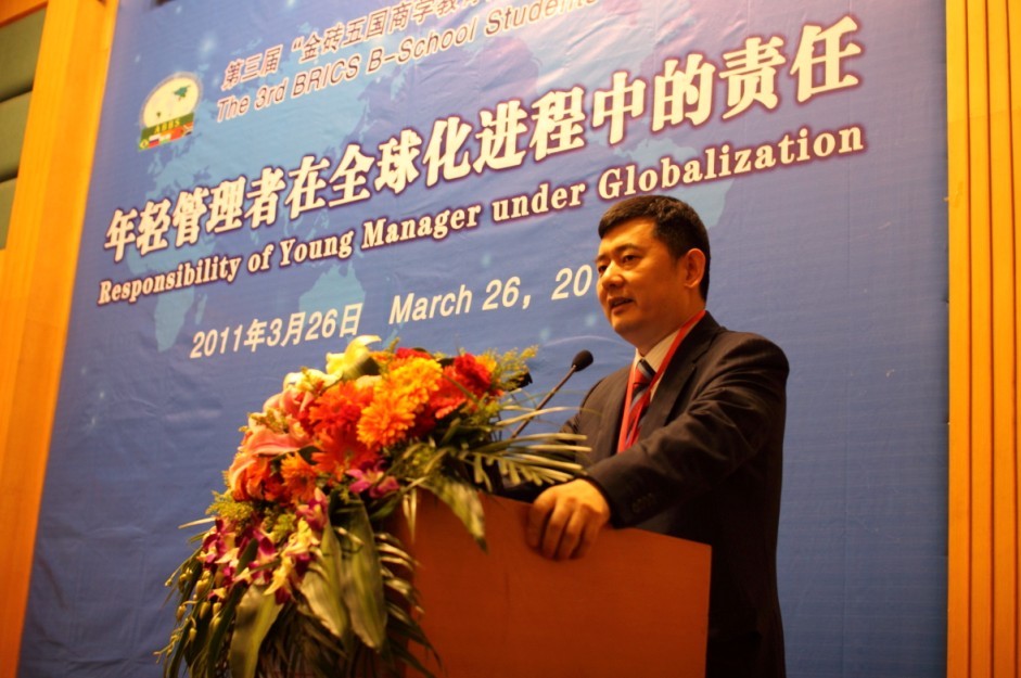 During the meeting, there were 9 experts and students who made excellent speeches centered on the responsibility of young managers under globalization. Mr. Meng Qingxuan, Director of the MBA Center, proposed that BRICS' financial enterprises would find their way out in the process of reorganizing the emerging market. Since the three prominent features of the emerging economy are transformation, reorganization and capital expansion, the enterprises should reorganize their strategies and structures for stronger and speedier development. Mr. Ravindranthan, speaker from Xavier Institute of Management and Entrepreneurship, expounded on the significance of cultivating international, professional managers with social responsibility and the capability of tackling business under globalization. Also, Mr. Nandagopal, Doctor from the PSG Institute of Management in India attached importance to the managers' global vision with the realization of cultural differences.