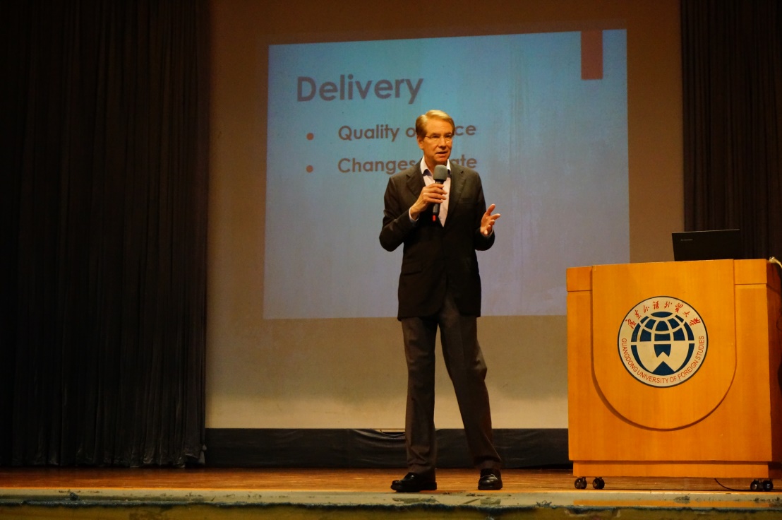 On the afternoon of 5th May, a lecture named Martin Luther King’s, I Have A Dream Speech——Master’s Rhetorical Art of Public Speaking, was held in the academic hall on the south campus. The lecture was given by Professor Stephen E Lucas from the Art Department, University of Wisconsin-Madison. Dean of the School of English and Education, DONG Jinwei, together with teachers and students from the school attended the lecture.
