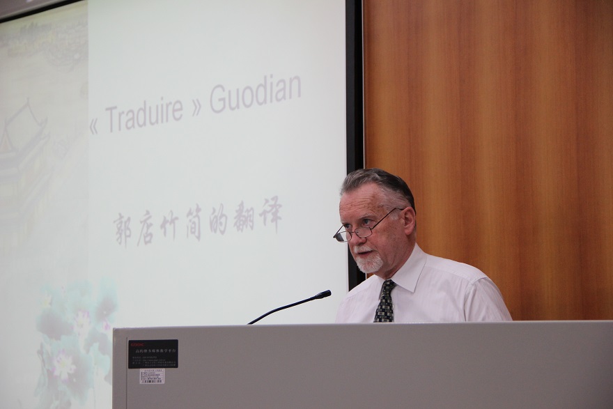 Professor Rémi Mathieu firstly introduced the background of the discovery of Guodian bamboo slips. In the year of 1993, Guodian bamboo slips were discovered at the No.1 Guodian Chu Tomb in Guodian Village, Jingmen City, Hubei Province. More than 804 bamboo slips were unearthed, which can be dated back to the end of the 4th century BC. These bamboo slips included 16 philosophical classics, most of which were Confucian classics, and two articles of Laozi. Therefore, the translation of Guodian bamboo slips plays a good guiding role in researching Confucianism and Taoism and has important significance in Chinese ideological history. However, in order to do a good translation of bamboo slips, we firstly need to stride over language obstacles, and understand the original text very well and the cultural information across the ages behind the words.