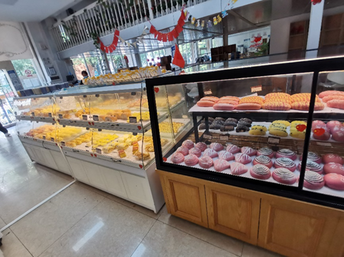 Yunshan Nutrition Bakery is located on the first floor of the Sports Building in North Campus and next to the Student Services Center. The bakery is committed to providing nutritious, delicious and economical products for the students, including European bread, beverages, box cakes, with new items being introduced constantly. Also, as one of the entities under GDUFS’s Yunshan Student Work-study program, it offers a large number of positions to the students. That is, most of the staff are employed students.