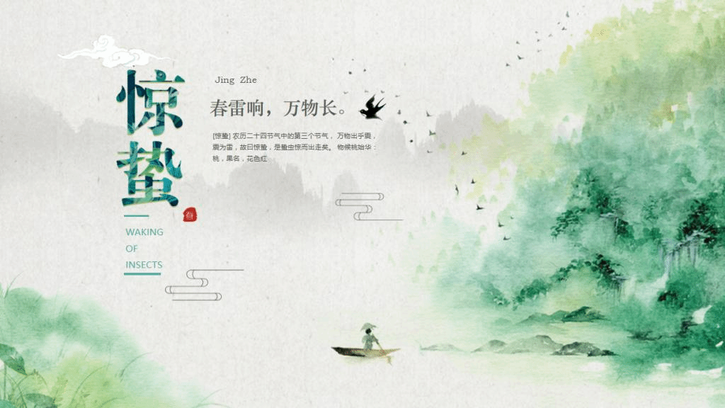 The third solar term,“Awakening of Insects” , also known as Jingzhe, falls on March 6th. This is a vibrant solar term full of unmissable sounds. Ancient Chinese people thought that when the first spring thunder cracked the sky, insects sleeping in winter began to wake up. In Chinese, the word “Jing” means awakening, while “Zhe” refers to the hibernating insects, so insects buzzing and animals reappearing are self-explanatory. Weather changes during “Awakening of Insects” such as the temperatures rising and increasing rainfall not only kicks off the spring plowing in the rural areas, but also influences people’ s live.