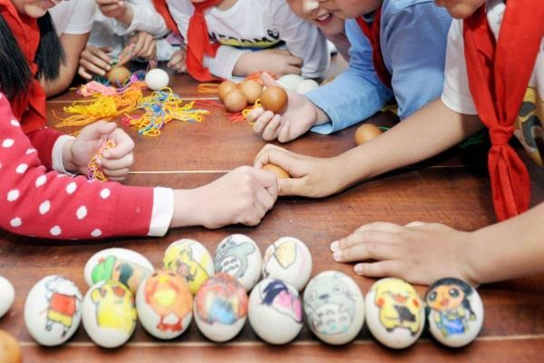 Eggs are essential in the start of summer. Since the shape of an egg is similar to a heart, people believe that eating egg is good for their health. They not only eat eggs but use them for games. Firstly, cooked eggs will be put in colorful string bags. Then, kids hang the bags around their neck and hold the eggs to hit others’ eggs. The losers are kids whose eggs broke during the hitting and the winner is the kid who has a complete egg at the end.